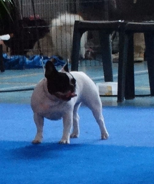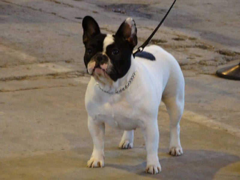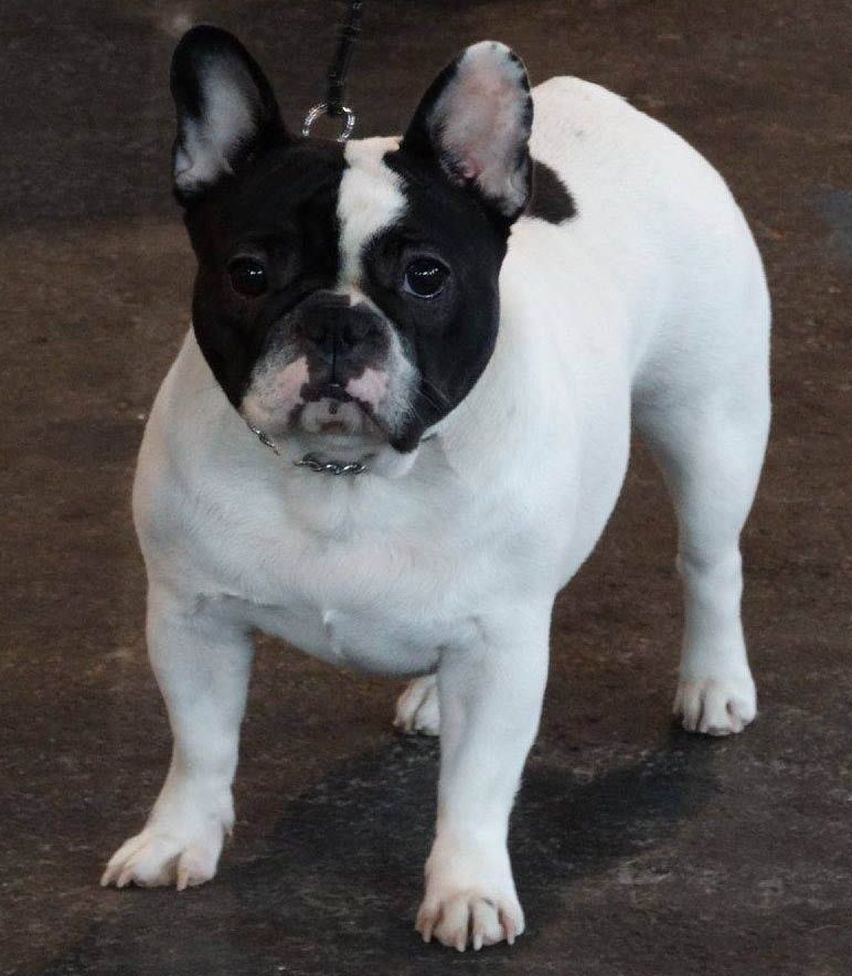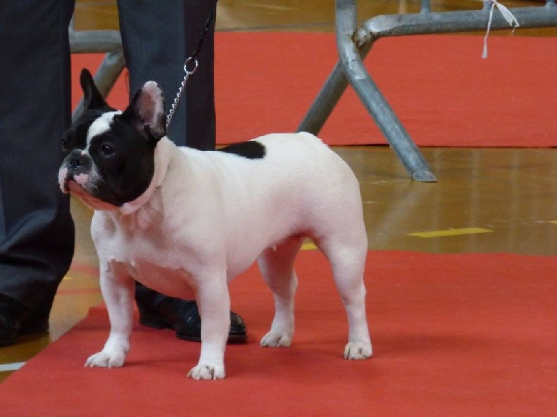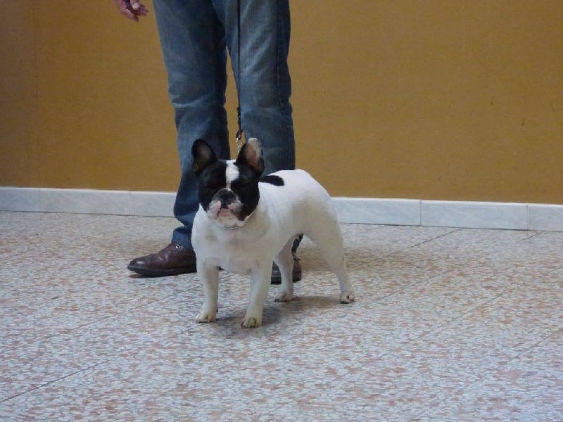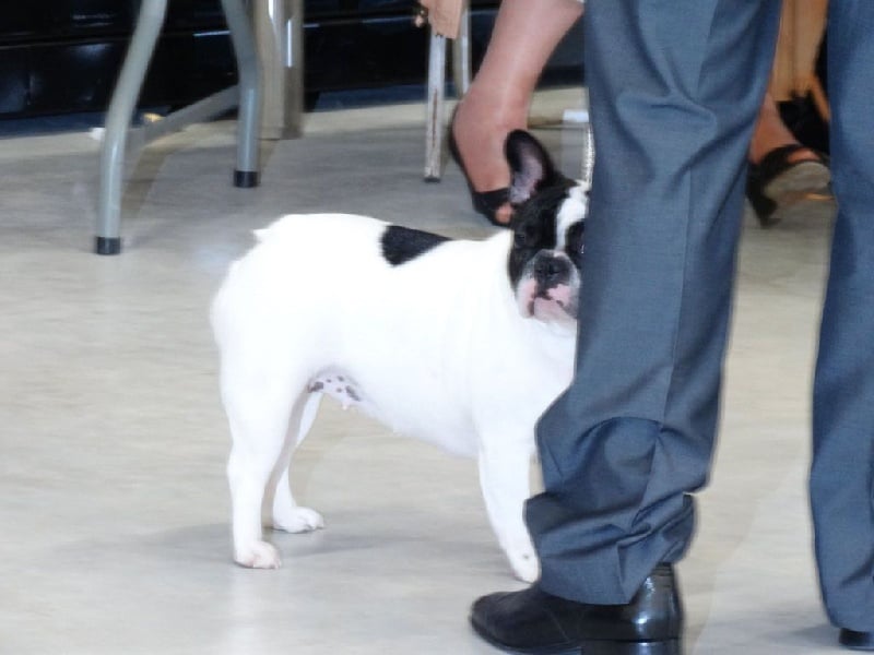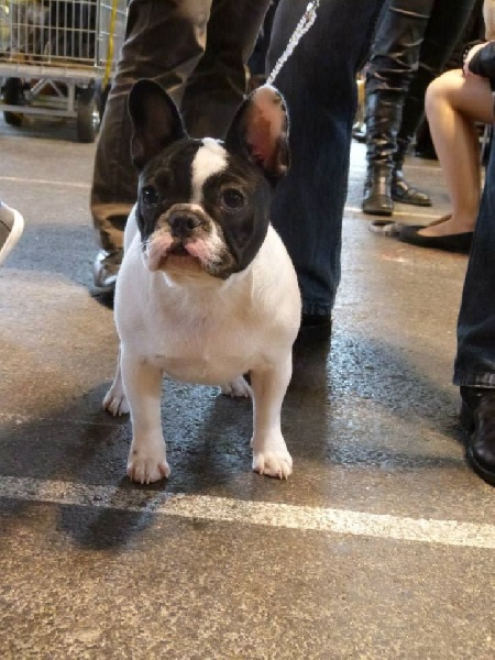 Très bon sujet , puissant petit format. Tête bien typée ,dentition correcte, narines ouvertes , lèvres épaisses. Dos large poitrine descendue .EX AV et ARM . Epaules musclées, pieds de chat.Mouvement typique. Très bonne présentation
