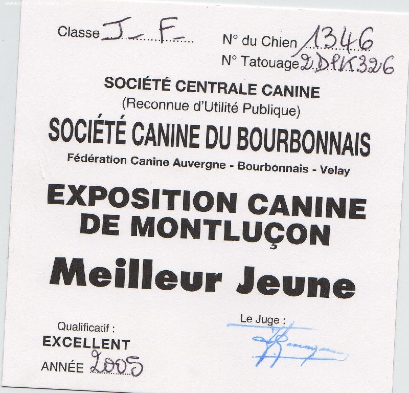 Un grand succès pour Valentine classée meilleur jeune de l'exposition toutes races confondues par Mr Calendrin