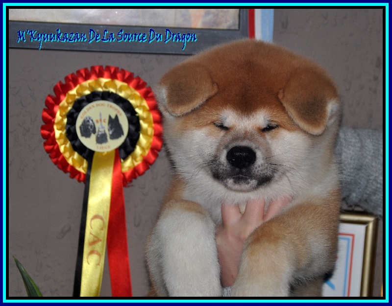 Alors place aux résultats de l'exposition national de Genk (BE) du 8 février 2014, sur 27 akitas engagés : - Mitsuyoshi De La Source Du Dragon (3 mois), 4 ème Prometteur en classe Baby Mâle. (Prop: Mickael et Wendy)- M'Tamahimé De La Source Du Dragon (3mois), 3 ème Très Prometteur en classe Baby Femelle - M'Kyuukazan De La Source Du Dragon (3 mois), 2 ème Très Prometteur en classe Baby Mâle- I'Shinzan Des Dragons Du Soleil Rouge (11 mois), 2 ème Excellent (sur 5) en classe Jeune Mâle. Très fière de lui et ses amélioration.- G'Toukahimé Des Dragons Du Soleil Rouge (25 mois), 2 ème Excellent en classe Ouverte Femelle.- Hakurei Go Des Dragons Du Soleil Rouge (23 mois), 1er Excellent en classe Intermédiaire Mâle.Then places the results of the National Show Genk (BE) of 8 February 2014 on 27 akitas engaged:- Mitsuyoshi De La Source Du Dragon (3 months), 4th Promising in Class Baby Male. (Prop: Michael and Wendy)- M'Tamahimé De La Source Du Dragon (3 months), 3rd Very Promising in Class Baby Female- M'Kyuukazan De La Source Du Dragon (3 months), 2nd Very Promising in Class Baby Male- I'Shinzan Des Dragons Du Soleil Rouge (11 months), 2 nd Excellent (5) in Class Young Male. Very proud of him and his improvement.- G'Toukahimé Des Dragons Du Soleil Rouge (25 months), 2nd Excellent in Class Open Female.- Hakurei Go Des Dragons Du Soleil Rouge (23 months), 1 Excellent in Class Intermediate Male.