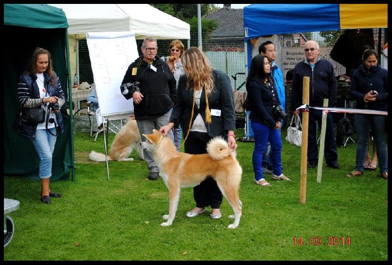 BELGIUM AKITA CLUB - CAC SPECIALITY SHOW Alors place aux résultats de la Spécial de race Belge (BE) du 14 septembre 2014, sur 49 akitas engagés : - M'Kyuukazan De La Source Du Dragon (10 mois) en mue total, Très Bon non classé en classe Jeune Mâle. Pas en condition mon petit cheri.Merci au Juge Monsieur Valerio Nataletti (I).