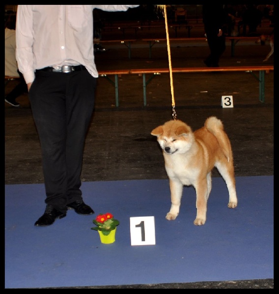Alors place aux résultats de l'exposition International du Luxembourg (LU) du 30 mars 2014, sur 39 akitas engagés :- M'Kyuukazan De La Source Du Dragon (5 mois), 1 er Très Prometteur en classe Baby Mâle + BOS Baby (Meilleure Baby Mâle)