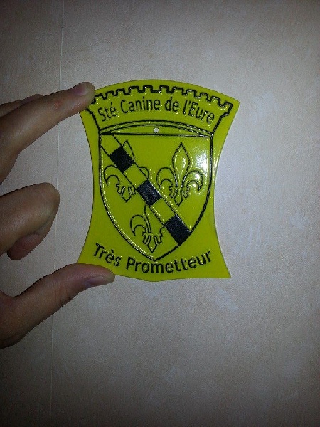 Classe: Puppy femelle Notes du juge:TB tête manque un peu de front oreilles B implantées et B portées TB machoire.Yeux B forme et B couleur B forme pieds queue présente Roach Back présent Poitrine B développée Démarche juvénille a travailler