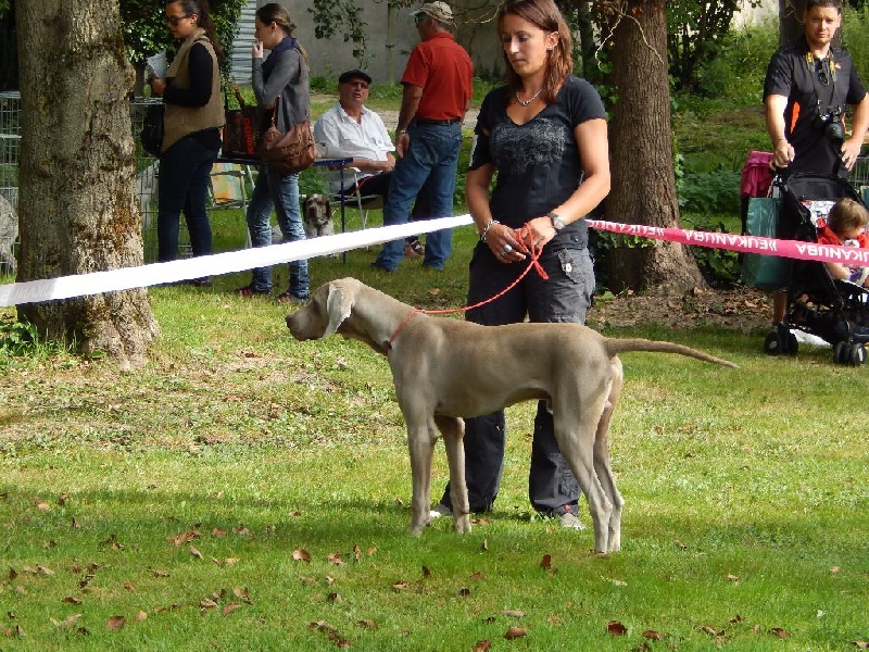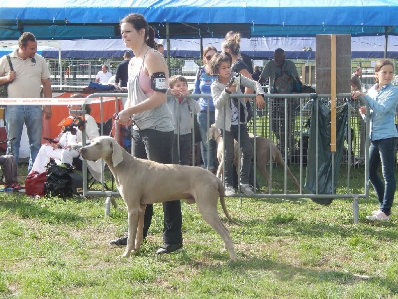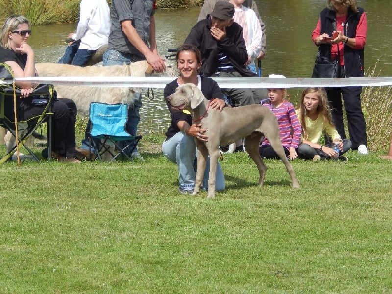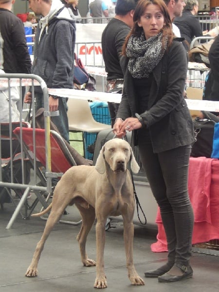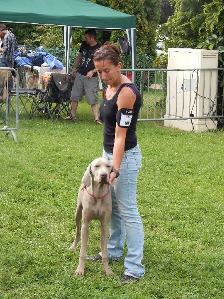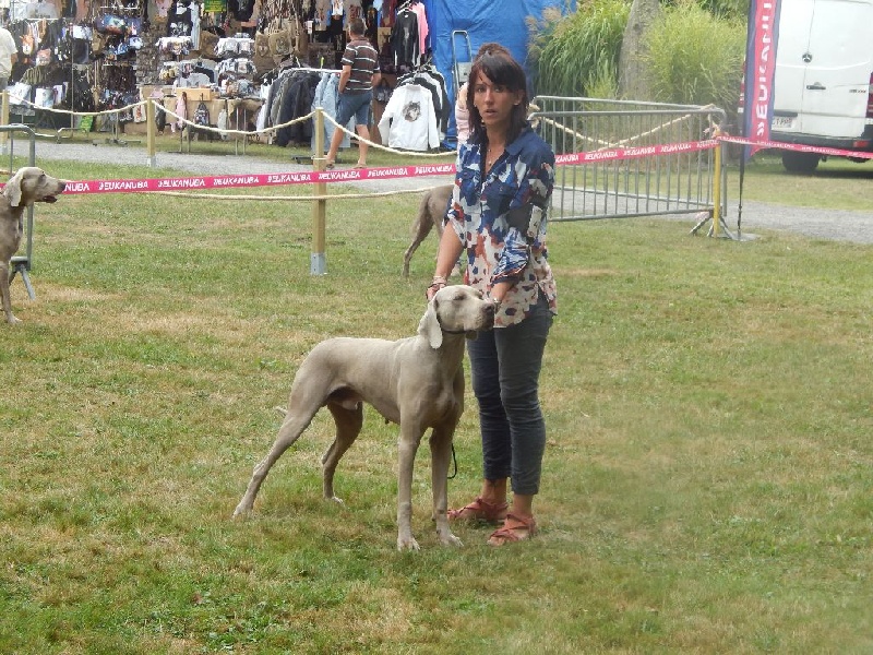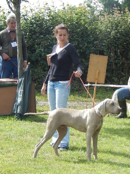 Dentition ok, bien dans le type de la race, encore très juvénile dans sa construction, mais qui devrait bien évoluer. Déjà une ossature solide, excellent pieds. Allure juvénile mais déjà travaillé pour présentation. Chien sympa et équilibré, à revoir dans l'avenir.