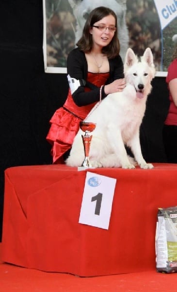 Issue d'une lignée américaine, Izzy Dream est une chienne fort bien construite, avec un excellent caractère, elle est toujours joyeuse. Très joueuse et en demande presque constante d'activité. Excellente pigmentation, poil et sous poil très blanc.
