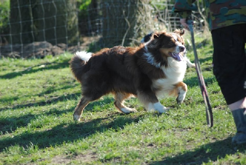 Ashtorn, c'est le chien de ma vie. C'est le plus cadeau que ma Cachou m'a offert. J'ai une relation très particulière avec mon chien. Il est né chiot unique et cela n'a fait que renforcer nos liens.Ashtorn est un chien avec un caractère bien trempé. Il a fallu énormément de patiente, d'observation, de rigueur pour son éducation. En aucuns cas, il cedera sa place de chef au sein de la meute. Il a un très fort instinct de conduite et cela n'a pas faciliter la tâche pour la conduite de troupeau. Il fait cependant preuve d'énormément d'intelligence et de concentration lorsqu'on le sollicite correctement. Il sait montrer qu'il veut faire plaisir. Son regard en dit très très long. Il sait analyser les situations et agir en fonction de ce que je lui demande. Avec un tel chien, il est impératif de pouvoir se remettre en question. Il est demandeur d'activités. Il se plait dans tout ce qu'on lui propose : obéissance, cani-cross, dog survival, frisbee ou simplement une belle promenade mais je sais que son coeur bat encore plus fort lorsque nous travaillons sur moutons. C'est un chien qui n'hésitera pas un seul instant à intervenir si il sent un danger dans sa maison ou avec les membres de la famille. Il représente, pour moi, tout ce que j'attends d'un berger australien. C'est ma perle...