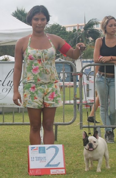 10,1 KGS / 28 CMS - Excellent crâne - Excellente tête - Bonnes implantations des oreilles - Excellente forme des yeux et manque un peu de pigmentation au coin de l'oeil gauche - Excellent profil et prognathisme - Excellente largeur mâchoire inférieure - Excellents antérieurs - Poitrail correct - Excellents pieds - Excellentes côtes et poitrine - Dos solide et présence d'un léger roach back - Queue courte mais présente - Excellente robe - Excellents mouvements - Allures libres