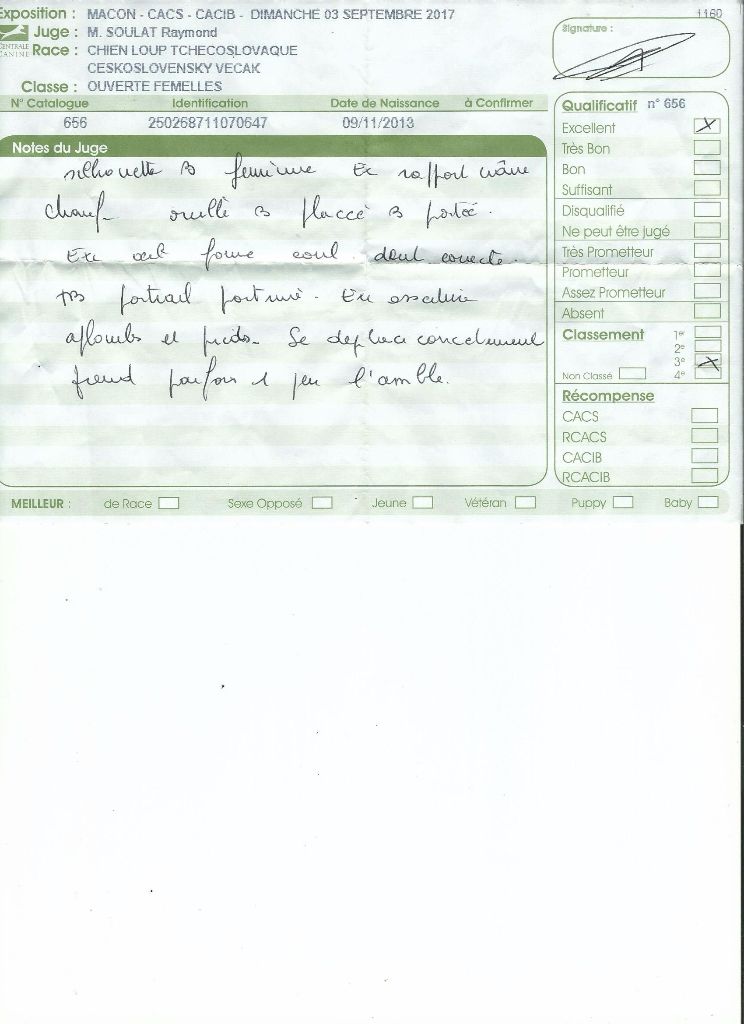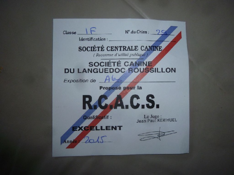 14 mois - Féminine - bien typéetête proportionnée au corps, oreilles longuettes, joli masque et expression. DCC. ?il un peu rond de belle couleur. Dessus descendant, excellente ossature et hauteur de poitrine.Belle couleur de robe en condition de poilExcellent pieds et aplombs.A/R serre le jarret, mouvement correct sans +excellent caractèreConfirmée ce jour