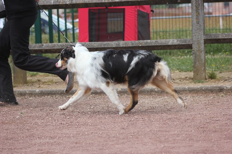 Robuste pour une femelle.DCC. tête type et expression correcte.Ossature moyenneTB aplom et angulationMouvement correct.