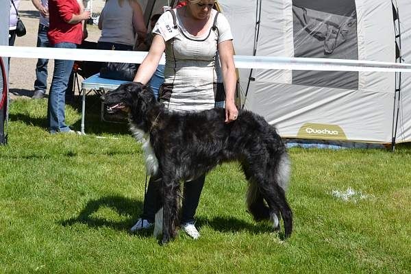 jolie sujet bien proportionne. exc dessus et dessous dcc jolie tete bien proportionne .oreilles b plantees exc ossatures . jaimerait poitrine 1 peu + descendue fouet pourrait etre + en poil tres bon pieds ex allures laterales fouet portee un peu haut aux allures