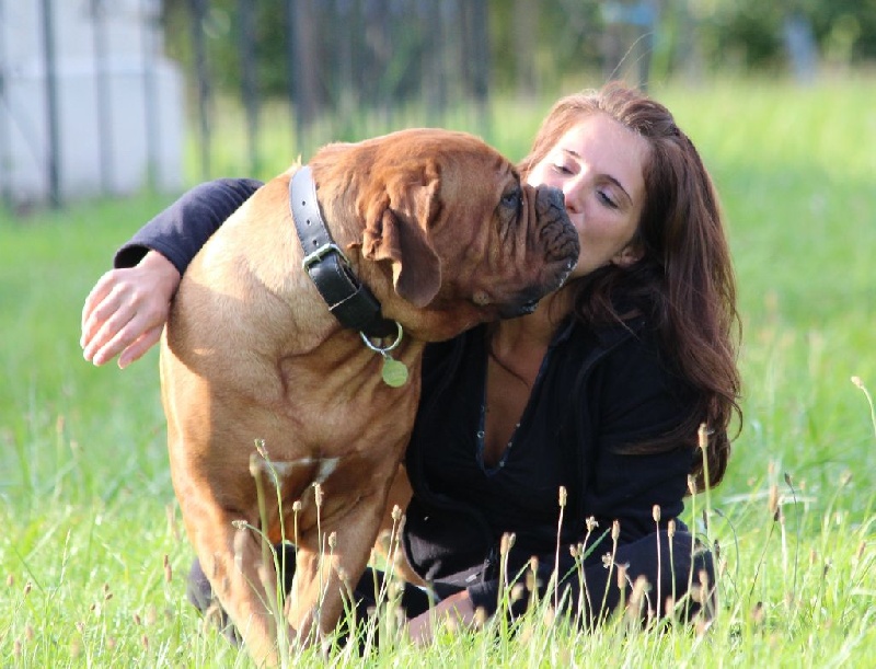 Notre première dogue de bordeaux, souhaitant á tous les futurs propriétaires de ces gros "pépères" d'avoir un chien au même caractère que notre "nounette". C'est avec sa douceur, sa beauté, sa fidélité que notre fifille fait notre bonheur. Elle est très joueuse, et docile. Avec elle, il est possible de faire de longues balades autant en voiture qu'en pleine nature. Mais ce que nous aimons par dessus tout: SES CÂLINS....