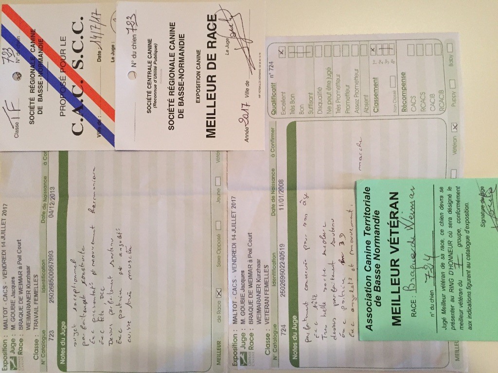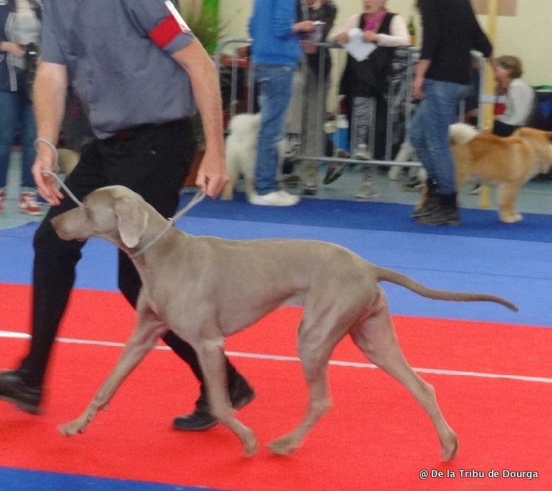 - DC- Excellent modèle dans son ensemble- Excellente tête, oeil suffisamment coloré- Excellent rapport crâne/chanfrein- Oreilles de bonne longueur, bien portées- Excellentes ligne de dos et sortie d'encolure- Poitrine correcte- Excellents pieds et angulations- Démarche sportive