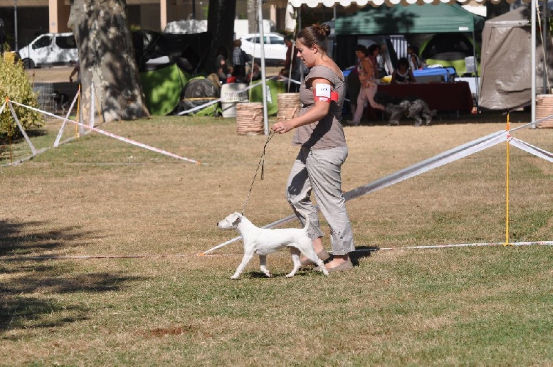 Ippon est le gagnant du Challenge Pays de Loire - Centre 2015 qui représente 3 jours de concours consécutifs dont les 2 premiers sont au ragondin et le 3ème est un terrier artificiel.C'était la toute première fois qu'il était mis en présence des ragondins et qu'il chassait dans des terriers qui pouvaient être inondés.Sur ce week-end de concours, Ippon a eu un déclic et il a donc compris qu'il devait aboyer et non mordre. Il a fait un travail exceptionnel le premier jour, ce qui lui permet d'être le meilleur chien de la journée.Sur le 2ème jour, le travail du chien précédent à quelques mètres de son lieu de travail à lui a peut-être été la cause de la perte de points.Et le 3ème jour, il nous a vraiment étonné. Son attitude a été totalement à l'opposé des autres jours de concours au TA. Il a tenu l'accul, n'a jamais cherché à mordre malgré les nombreuses attaques.Un énorme bravo pour ton travail mon loulou et ton évolution spectaculaire !!!Ceci a seulement 19 mois.