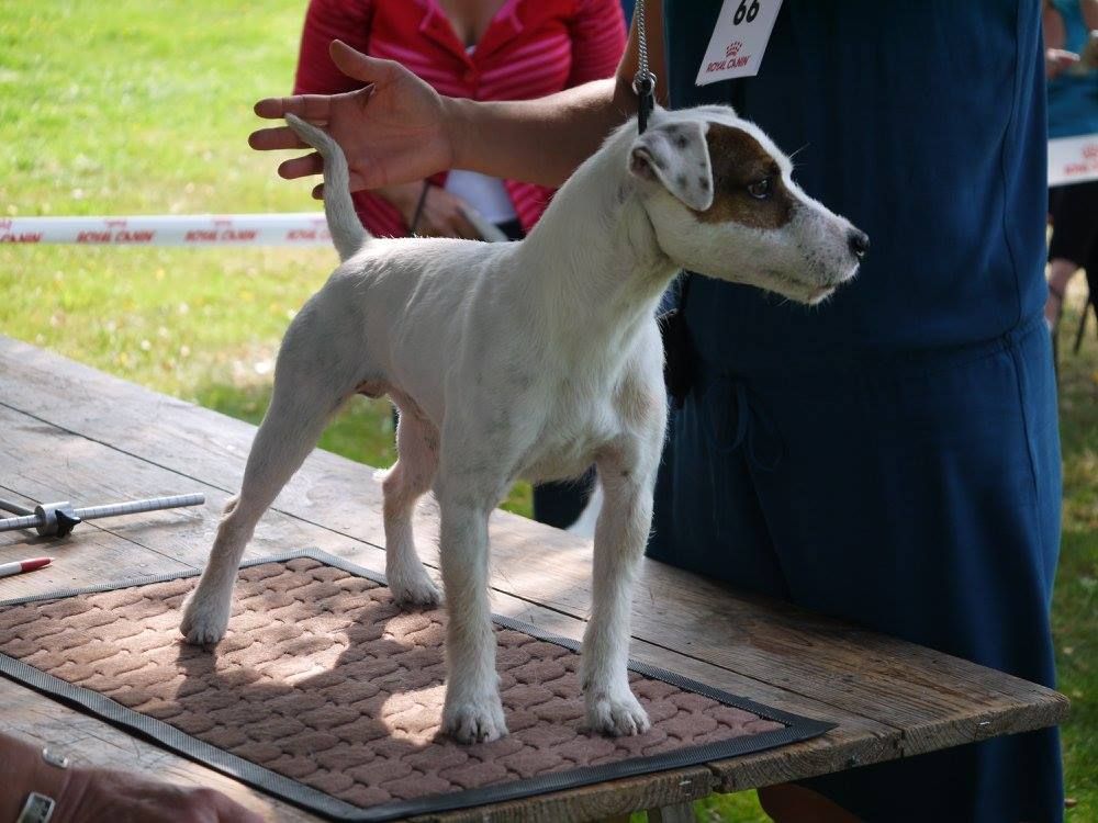 H : 34,5 cmTP : 44 cmDCCJolie têteExc port d'oreilleExc couleur et forme d'yeuxExc pigmentationExc ligne de dessus et poitrineExc épaule et postérieurQueue bien inséréeExc piedsExc qualité de poilSerre légèrement des antérieurPort de fouet légèrement timide