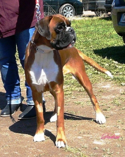 17 mois ,jolie couleur rouge cerf, grande carrée,B ossature,crane bien bombé, museau bien rempli, yeux foncés TB placés, incisives bien sorties,B encolure,poitrail bien dessiné,B profondeur poitrine,B LG dessus dessous,B angulation av et arr, B démarche et foulées... EXELLENT.