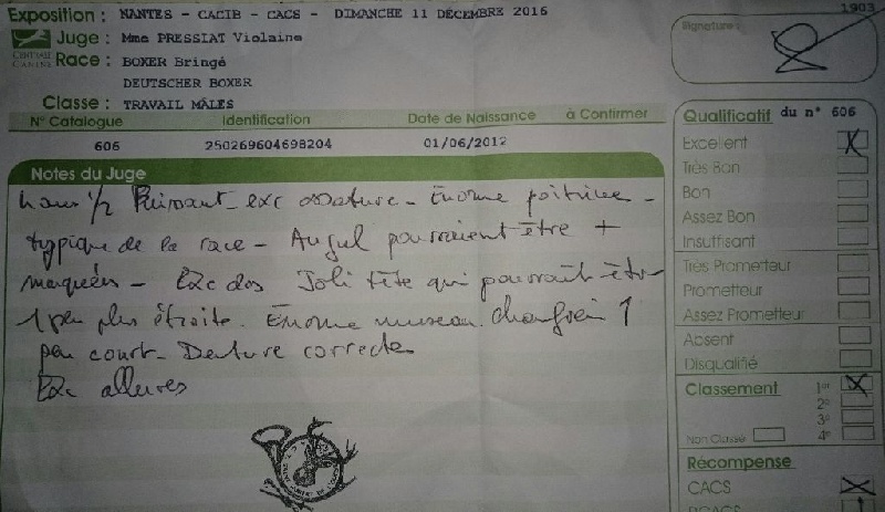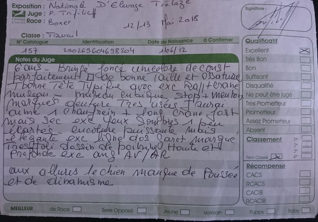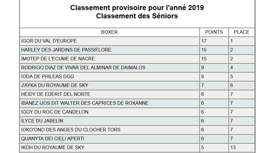 Résultat lecture officielle Association Française du Boxer