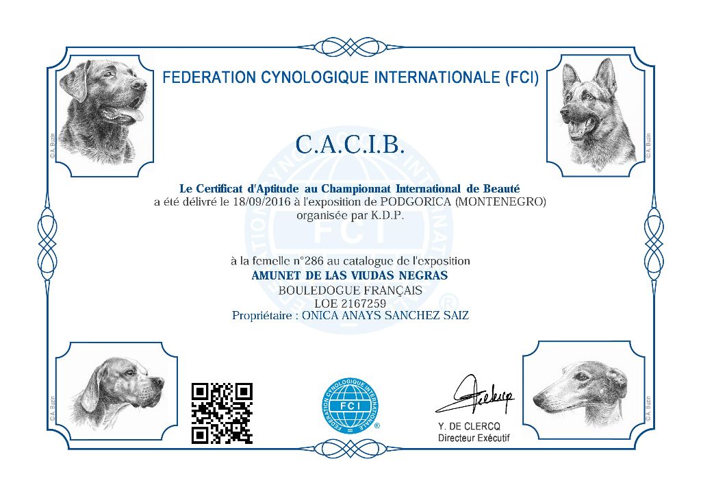- CACIB y CAC y B.O.B (Meilleur de sa race)