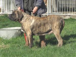 Vedette, fille de Seven et de Sister, jolie femelle bringée confirmable, est disponible à la vente.