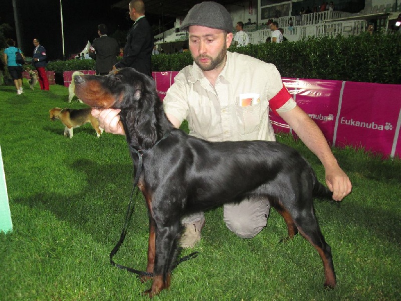 Pour sa 1ère expo en classe Jeune, Viny me fait la surprise de tout gagner devant les adultes et bat son père pour le Meilleur de Race!Outre sa qualification pour la CRUFTS 2015, elle obtient le titre convoité au Portugal de LISBOA WINNER 2014!!!Discutant en anglais avec la juge, elle ne reviendra pas que Viny soit la fille de Devil.Cette 1ère expo à l'étranger nous verra finir sur le ring d'honneur par 2 fois pour la meilleure jeune femelle puis pour le meilleur du 7ème groupe où nous avons juste participé face à des chiens adultes de show présentés par des handlers.