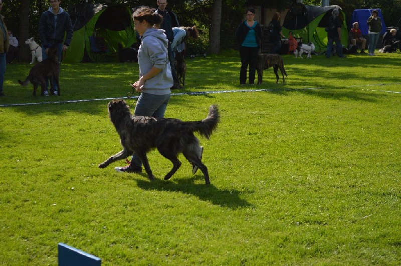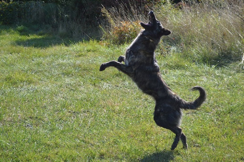 Irish montre de réelles aptitudes pour le travail et se montre polyvalente. Irish a été monté en Ring Français, initié en Agility et en Cani cross.