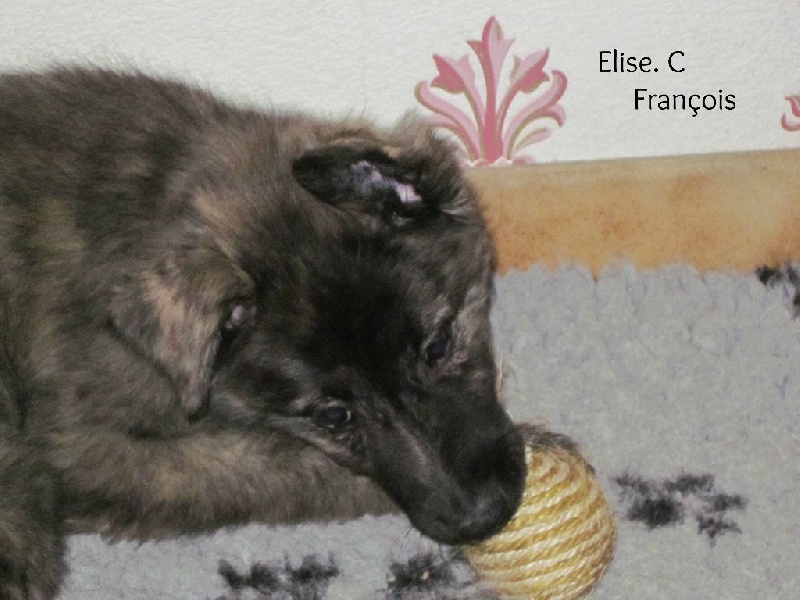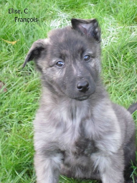 Tête féminine avec un stop fuyant, oreilles trop souple avec un pli, dentition en cisailles, corps encore un peu étroit, croupe ronde, allures doivent se développer, caractère aimableA cause du port d'oreilles, le qualificatif très bon.Encore un grand MERCI à mon amie Justine qui a eu la gentillesse de présenter Irish Coffee pour moi