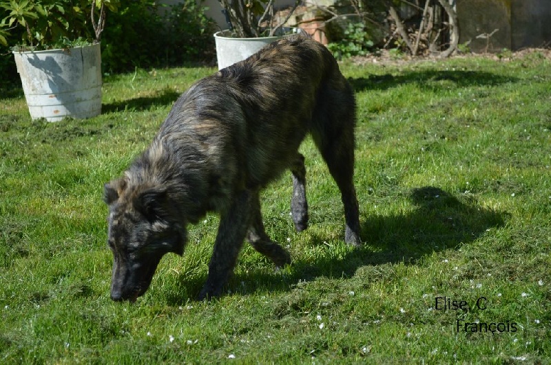 Irish est une femelle de caractère, très gardienne. L'âge avançant, Irish reste infatigable et en demande constante de travail et d'attention. C'est une chienne extrement proche du maitre et sensible au changements.