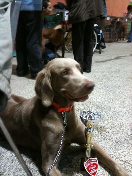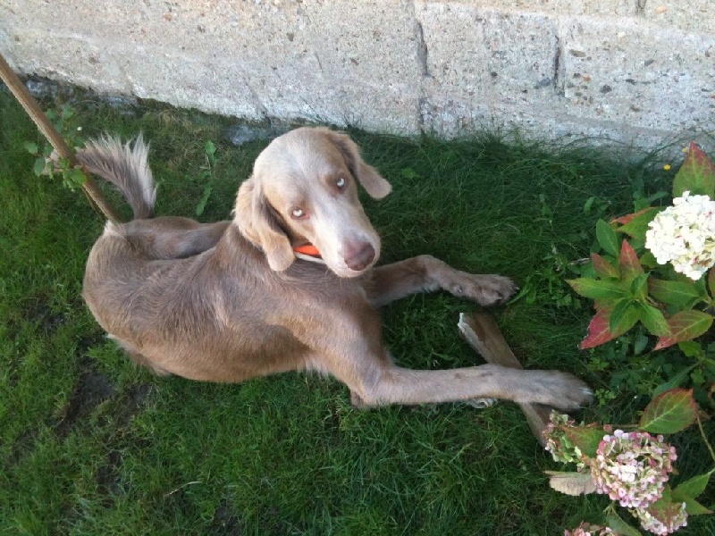 Chien Braque de Weimar Donald d'azur aux cinq fusées