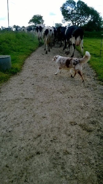 Nous apprécions tout de même ses nombreuses qualités pour nous aider à déplacer nos vaches, il s'est faire preuve d'autonomie et de persévérence face à une vache récalcitrante, il fait preuve d'une grande confiance en lui.