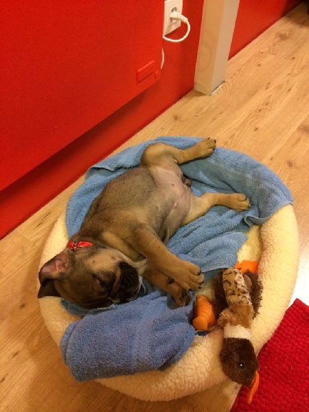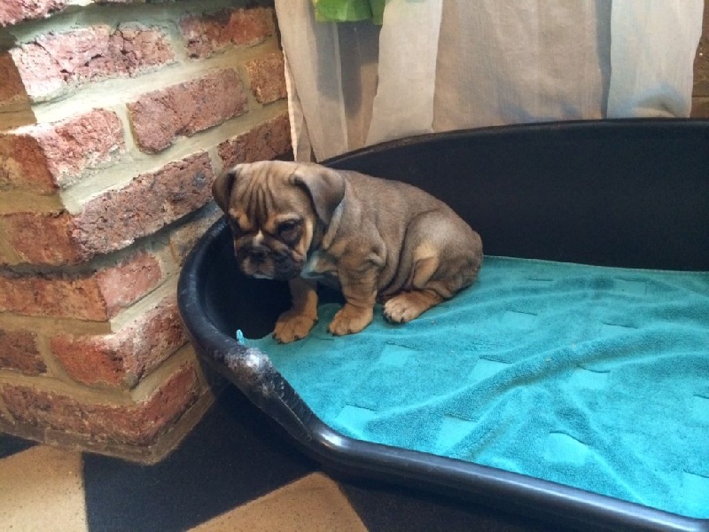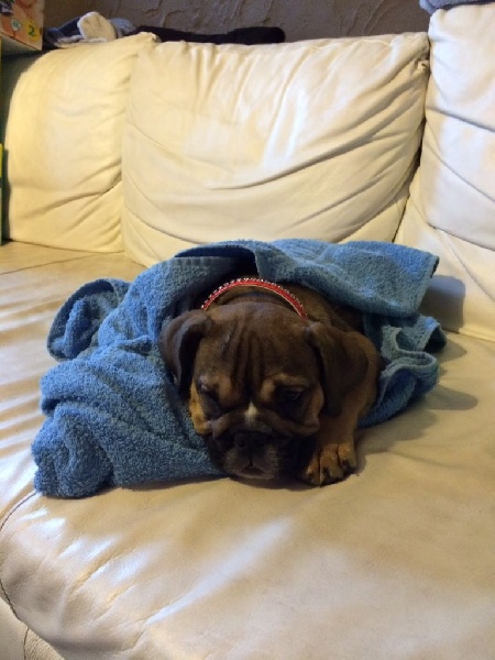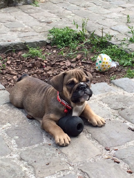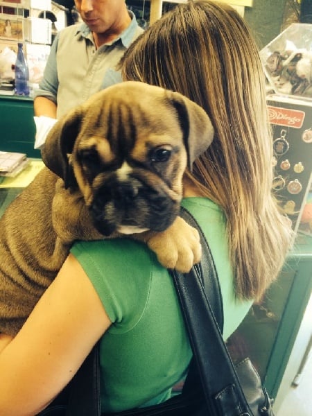 Tu es une petite bull tendre, affectueuse, curieuse, sociable, ..... Ta couleur brunâtre m'a fait chavirée.