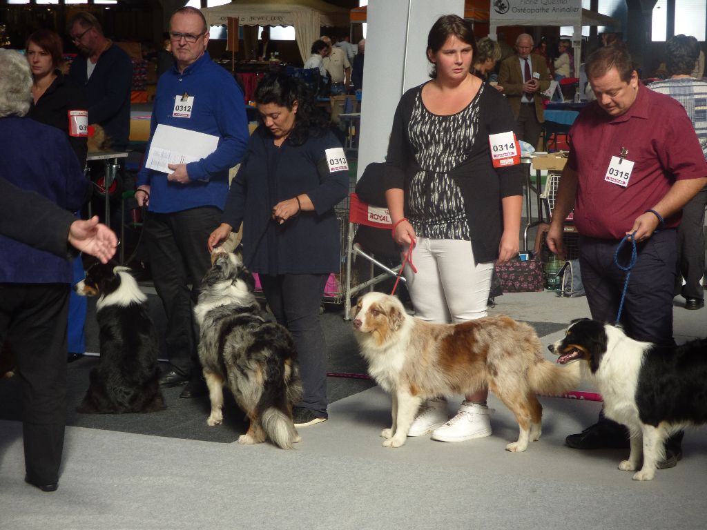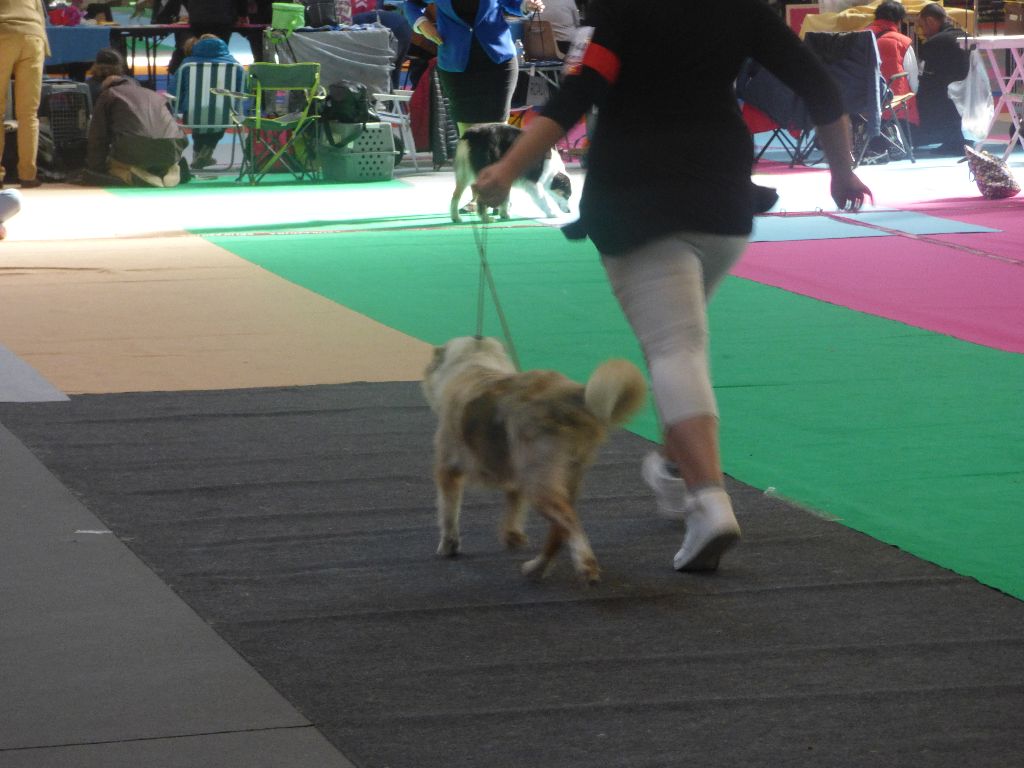 dentition complète , très bon ensemble d'un gabarit et d'un format moyen; très bonne tête et expression , belle ossature ;très bon aplombs et angulation ,arrière encore un peut droit, fourrure correcte, très bon mouvement.