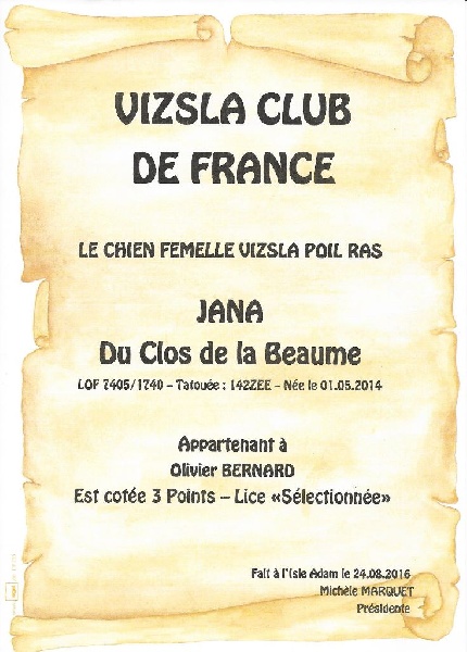 Pédigree de Jana Du clos de la beaume