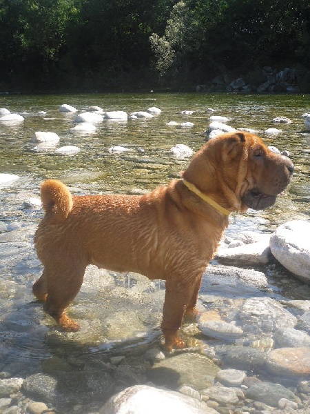 Obéissante, sociable avec les chiens et les autres animaux en général (elle vit avec deux chats), gentille avec les enfants, joueuse et très sportive, elle aime la nature et les grandes balades tout comme ses maîtres, mais aussi ronfler longuement dans son panier !!! Comparé à d’autres Shar-peï Faya adore l’eau et n’est pas dérangé par le froid car elle aime beaucoup la neige…