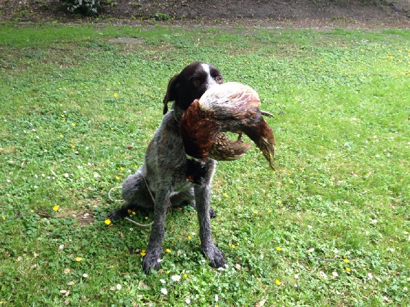 chien de 6ans classe excellent gibier tire equilibre caractere sage et facile a dirige rapport exceptionnelle chasse au pisrch très efficace sur chevreuil blesse il chasse 2a 3 fois part semaine perdrix lievre canard bécasse faisan naturel &venere le samedi & dimanchele jeudi il et avec moi au poste pour le gros contrôlé de tir et piste au sang