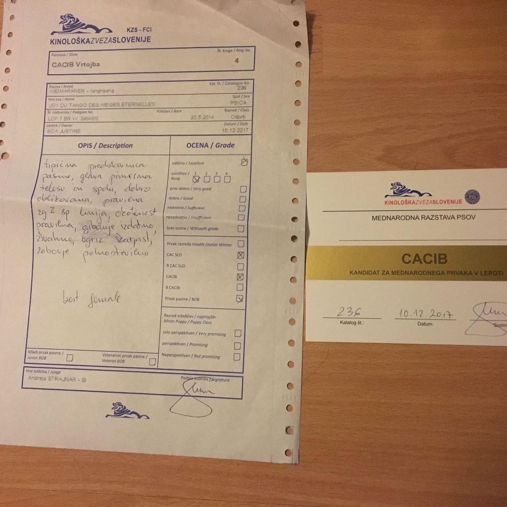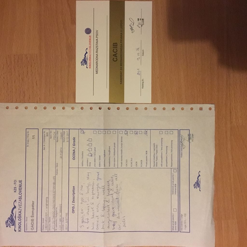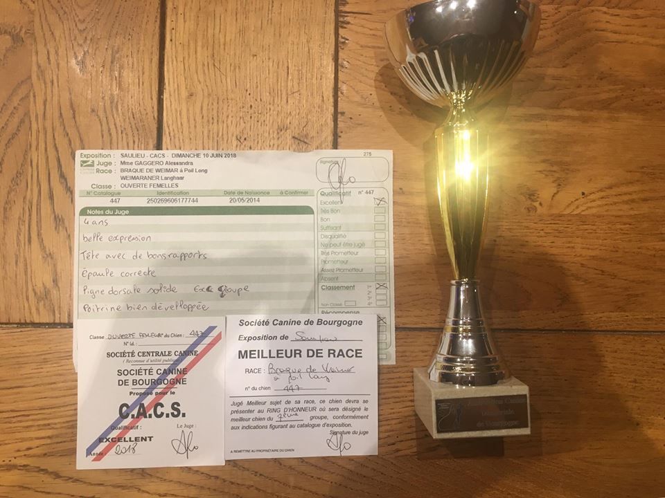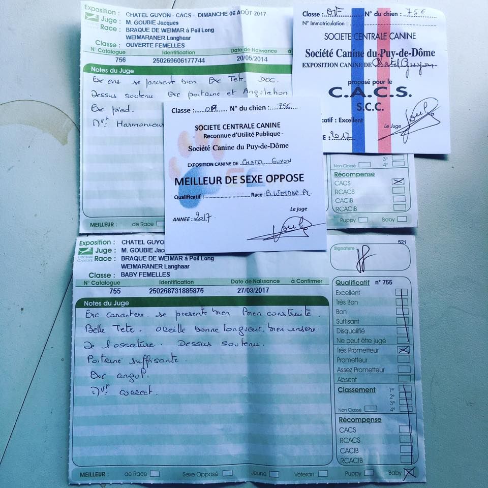 Excellent (33) - Meilleur Jeune (7) - Meilleur de Race de Sexe opposé (6) - Meilleure de race (14) - RCACIB (3) - CACL (1) RCACL (1) - RCACS (4) - CACS (14) - CACIB (6)