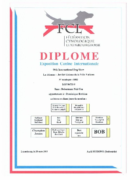 - JEUNE CHAMPIONNE DU DOBERMANN CLUB DE FRANCE DCF SIEGER 2015
