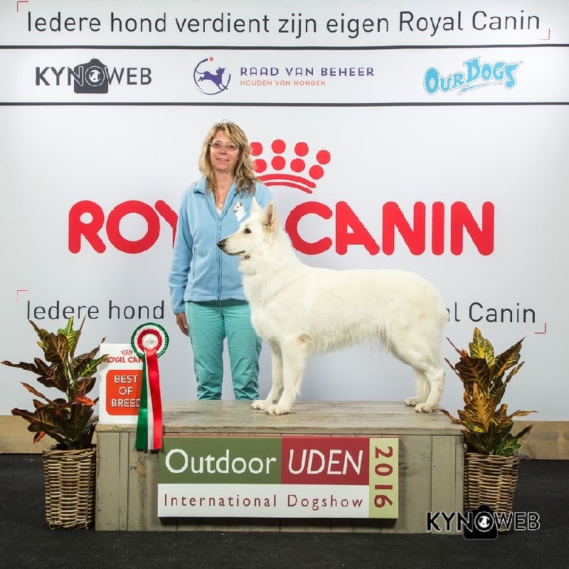 3 ans ½ Très jolie femelle, jolie tête, bonnes oreilles, yeux corrects, poitrine bien développée, bon corps et ligne de dos, bons pieds plats bon tempérament, très bien présenté, se déplace bien avec de bonnes allures ; Excellent ! Jet avec ce 4ème titres aux Pays Bas, devient Championne de Hollande