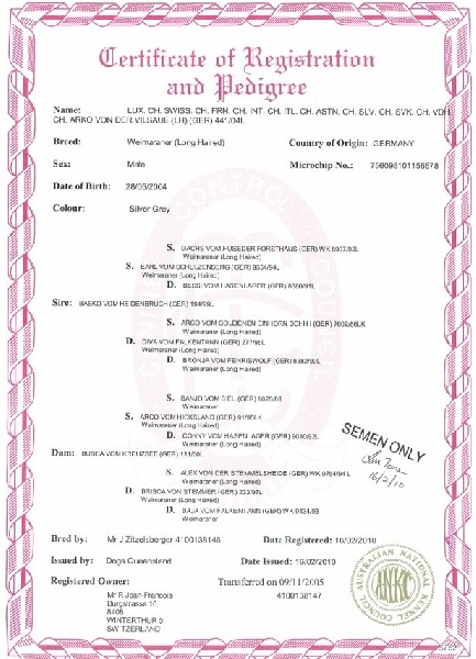 Chien Braque de Weimar CH. greyvale Silver mirror dit cher