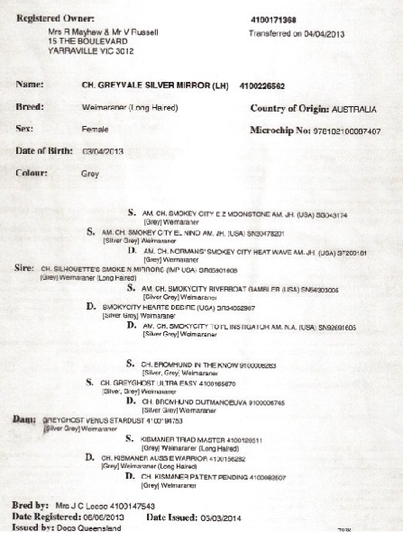 Pédigree de CH. greyvale Silver mirror dit cher