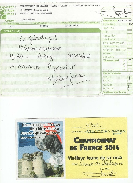 - Meilleur Jeune au Championnat de France à ANGERS 2014