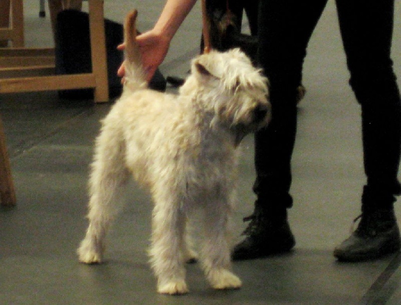 2 ans - bonne taille - tête typique - bien angulé devant - derrière un peu étroit - attache de queue typique - poils pas condition optimale - marche correctement AVIS DE L'ELEVEUR : ring grand comme un mouchoir de poche qui ne permet pas de mettre les chiens en valeur ! Pas digne d'une Nationale d'Elevage !!!