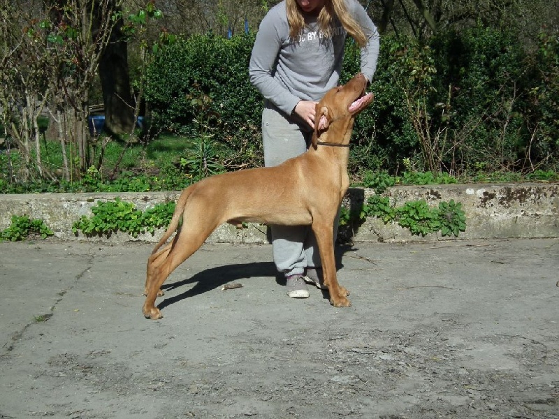 Bonne taille et proportions, caractère bien équilibré, bons mouvements, musculature bien proportionnée, dentition correcte, beaux yeux, oreilles correctes, nuque élégante, corps bien musclé, bonnes angulations avant et arrière, queue bien insérée et bien portée, couleur typique.1er Excellent, CACS, CACIB, Meilleur de Race