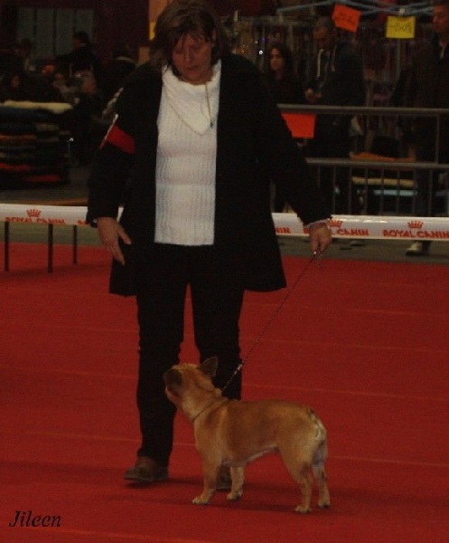 Classe Ouverte - 4ème Excellent valide sa cotation 4 - 11.8 kg - 29 cmFéminine et puissante, bonne ossature, excellentes angulations avant et pied, arrière un peu justeExcellente queue, roch back pourrait être plus visible, excellente tête, excellente denture, crâne, oreilles et stopExcellentes allures