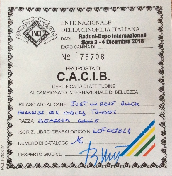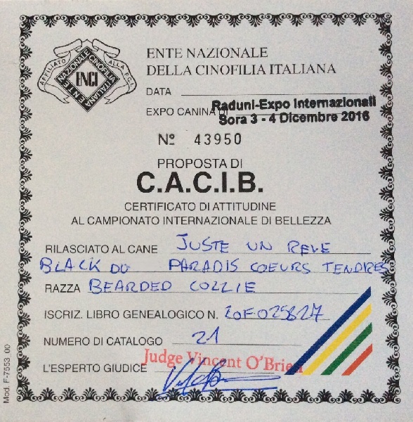Manifestion : Exposition Internationale FROSINONE - Juge : Mr VINCENT O.BRIEN ( IRL)