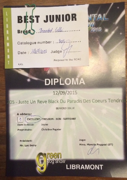 Chien Bearded Collie CH. Juste un reve black du paradis des coeurs tendres