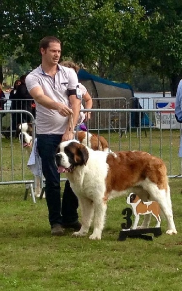 A été sélectionné meilleur puppy mâle PL8 mois. Bon format. TB ossature. Exc poitrine. Rein sec. Bonne épaule en place. Angulation devra se faire. Bonne ossature. Un peu de peau. Dentition correcte. TB oeil formé, couleur très masculin. Proportions crâne/chanfrein, TB stop. Bonne coiffe. Panard aux antérieurs. Arrière un peu serré.