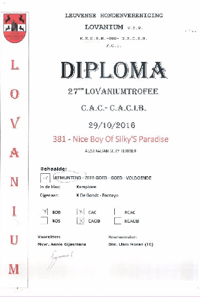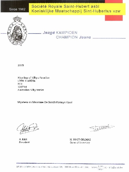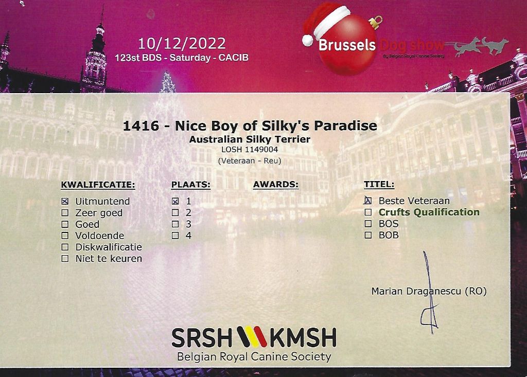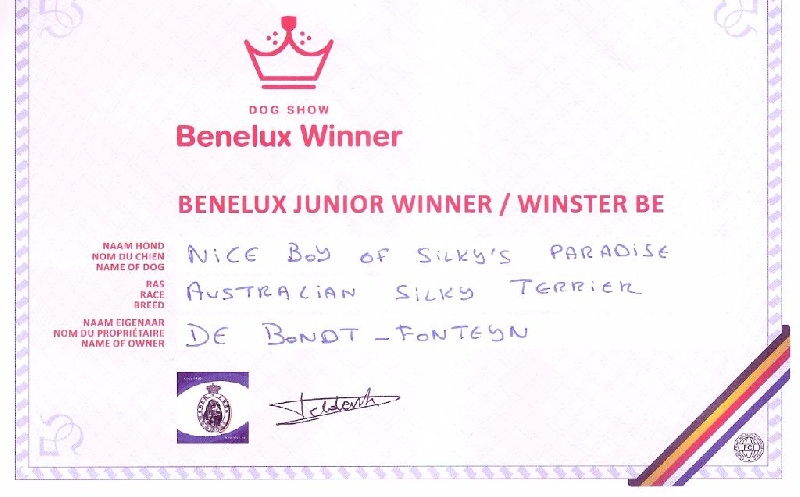 - 1 Exc (J)/J.CAC/ JUNIOR BENELUX WINNER (BE) - Crufts qualification