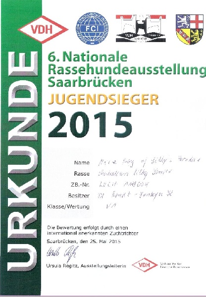 - 1 Exc (J)/J.CAC(VDH+KFT)/ SAARBRÜCKENJUGENDSIEGER