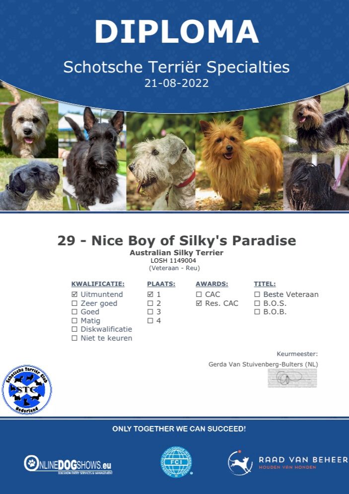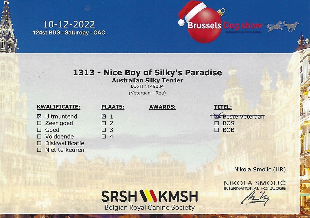 - 1 Exc (Vet)/Vet CAC/VET BOB/BOB/BIS VET 3/ BELGIAN TOP TERRIER (CRBT-KBTC)