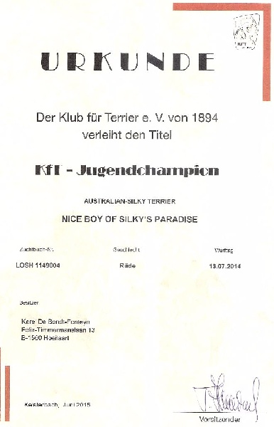 - 1 Exc (J)/J.CAC(VDH+KFT) -> JUNIOR CHAMPION (KFT) D