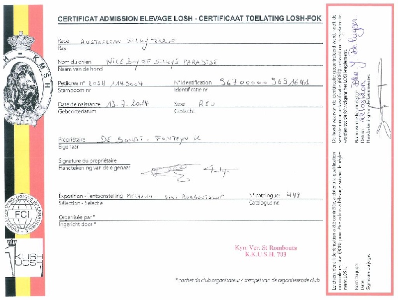 - 1 Exc (J)/J.CAC/J.BOB/BOB - Certificate Breeding Authorization
