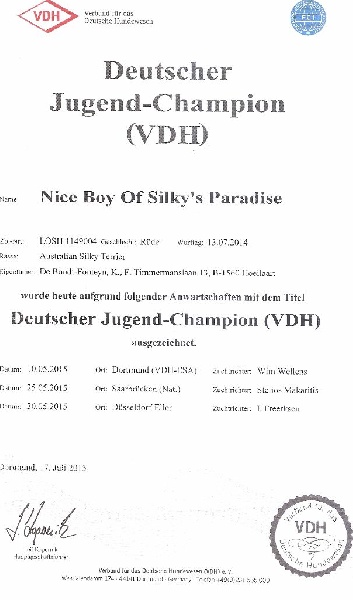 - 1 Exc (J)/J.CAC(VDH+KFT) -> JUNIOR CHAMPION (VDH) D